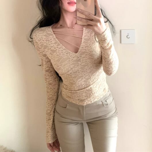 3色/ファーカラーレースアップコンビトップス ・12904