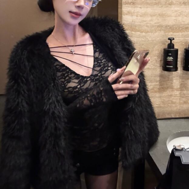 ファーデザインホルターネックトップス ・12698
