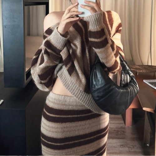【2点セット】3色/フーディーカシュクールトップス+マーメイドスカート ・12506