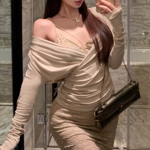 【2点セット】3色/フーディーカシュクールトップス+マーメイドスカート ・12506