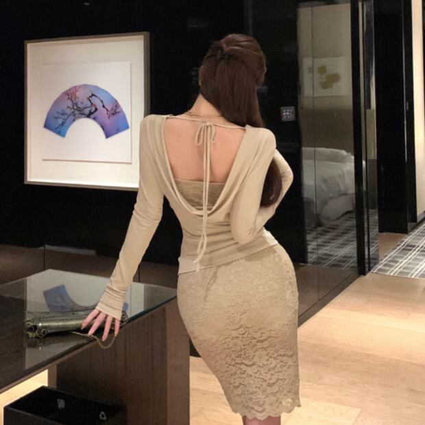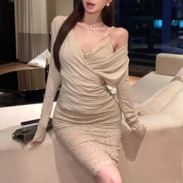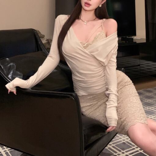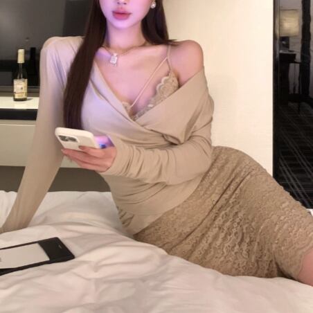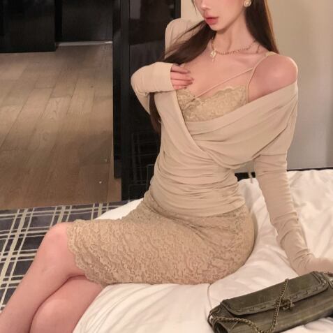 【3点セット】レースブラレット+オフショルトップス+レースヘムスカート ・12766
