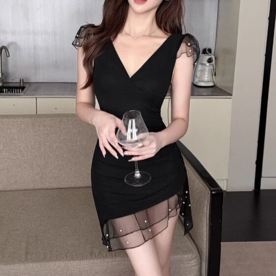4色/シアースリーブストラップショルダーワンピ ・12626