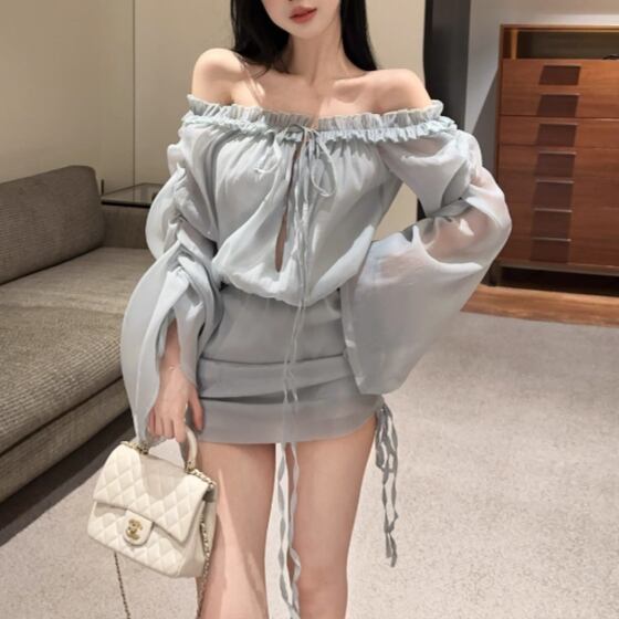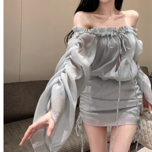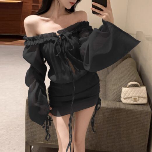 4色/シアースリーブストラップショルダーワンピ ・12626