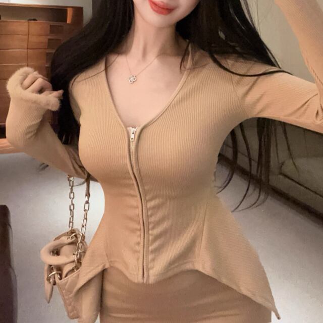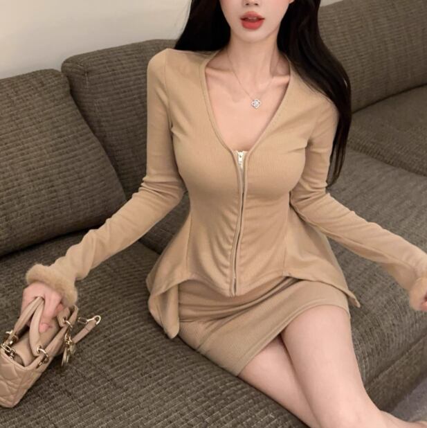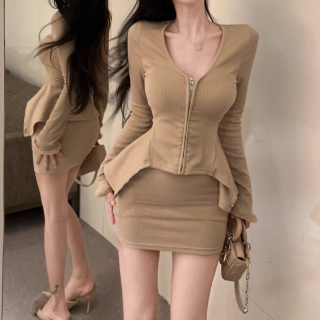 【2点セット】3色/フーディーカシュクールトップス+マーメイドスカート ・12506