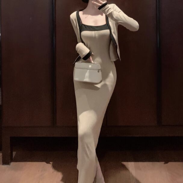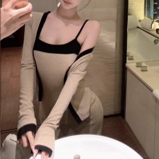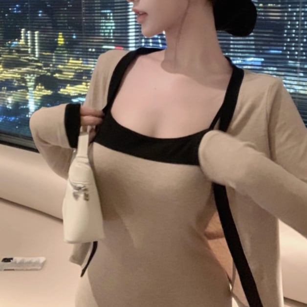 【2点セット】3色/フーディーカシュクールトップス+マーメイドスカート ・12506