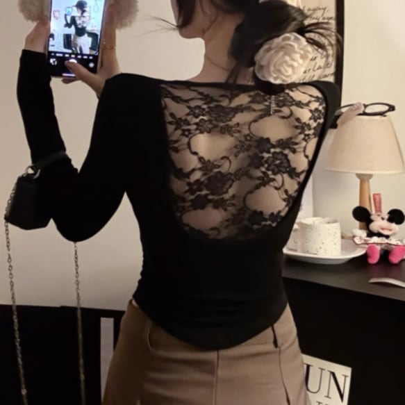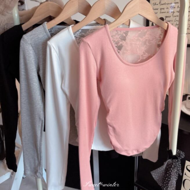 3色/ファーカラーレースアップコンビトップス ・12904