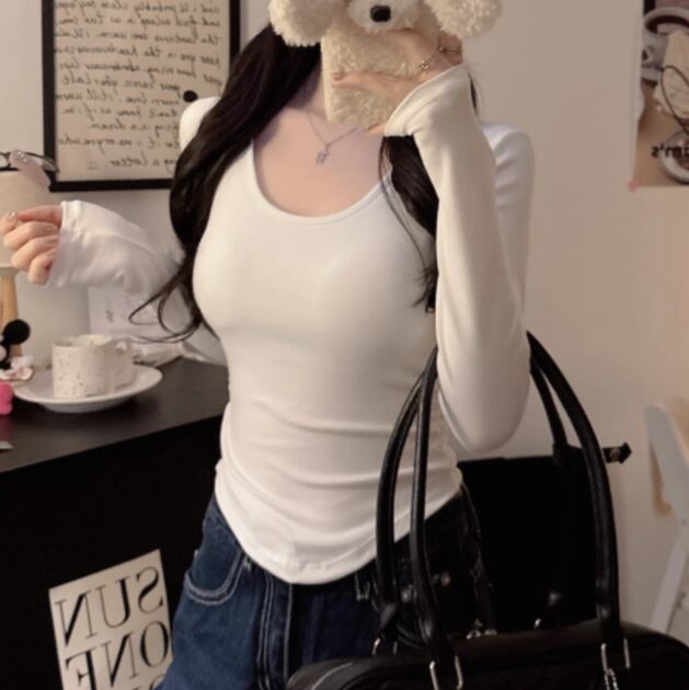 5色/オープンショルダードレープネックトップス ・12357