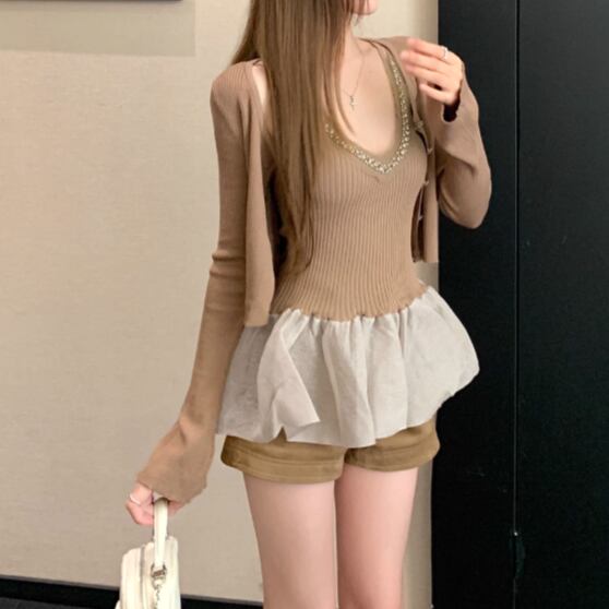 ▽Instagram「新作情報配信中」 フォローお願いいたします。 https://www.instagram.com/rote_roze.official/ ▼サイズ [ フリーサイズ ] トップス:着丈59cm バスト46cm カーデ:着丈37cm バスト68cm ※1-3cm程度の誤差がある場合がございます。予めご了承ください。 ▼シーズン 春,秋 ▼同じカテゴリの商品はこちら https://www.roteroze.com/categories/4991976 ▽お支払い方法 ・クレジットカード決済 ・キャリア決済 (docomo/au/Softbank/Y!mobile) ・後払い決済 (商品お届け後コンビニ払いなど) ▽注意点 ※こちらの商品は決済から10日-3週間前後でのお届けとなります。 ※配送日時指定等に関しては、ご指定できないことご了承くださいませ。 ※できる限り早くお届けできるように手配させて頂きます。 ※検品はしておりますが、もし届いた商品に不備がありましたら、誠実に対応させていただきます。 商品ID:RR012594