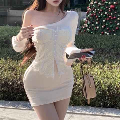 【3点セット】レースブラレット+オフショルトップス+レースヘムスカート ・12766
