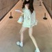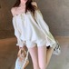 【3点セット】レースブラレット+オフショルトップス+レースヘムスカート ・12766