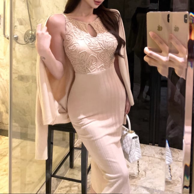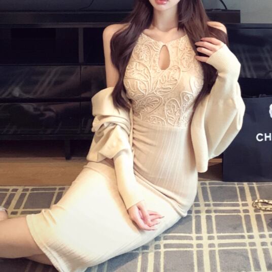 レースデザインワンショルワンピ ・12621