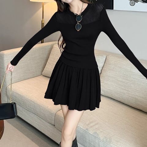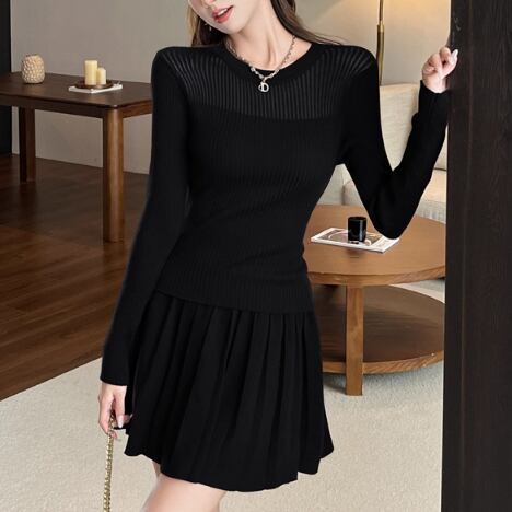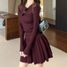 【2点セット】3色/フーディーカシュクールトップス+マーメイドスカート ・12506