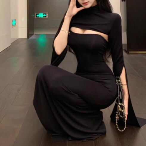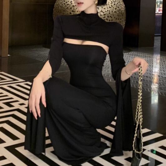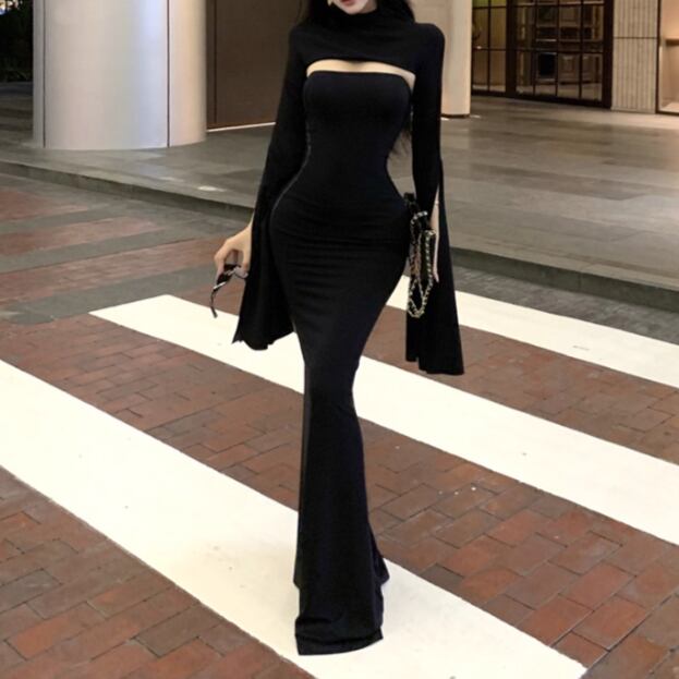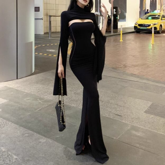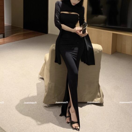 【2点セット】3色/フーディーカシュクールトップス+マーメイドスカート ・12506