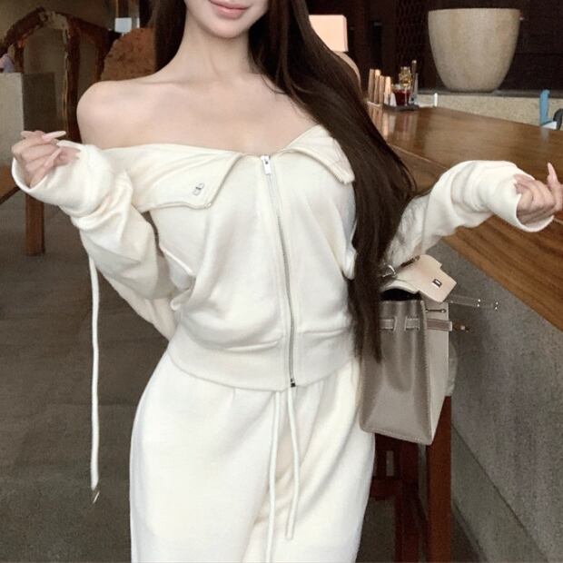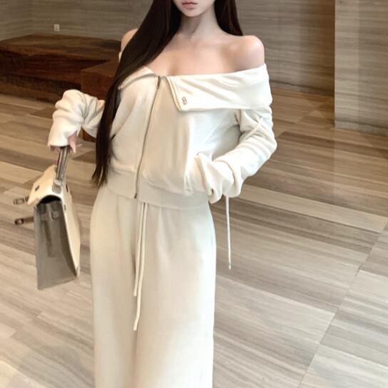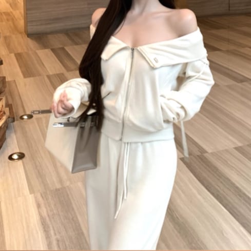 【2点セット】3色/フーディーカシュクールトップス+マーメイドスカート ・12506