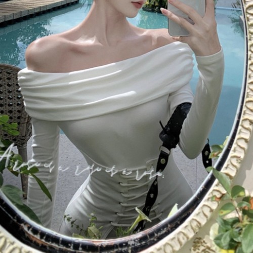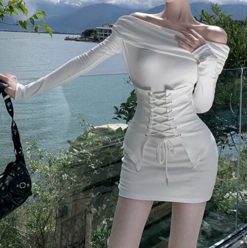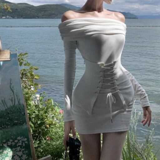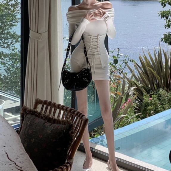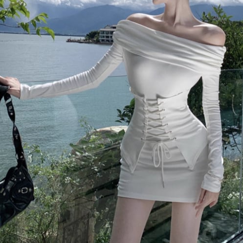 レースデザインワンショルワンピ ・12621
