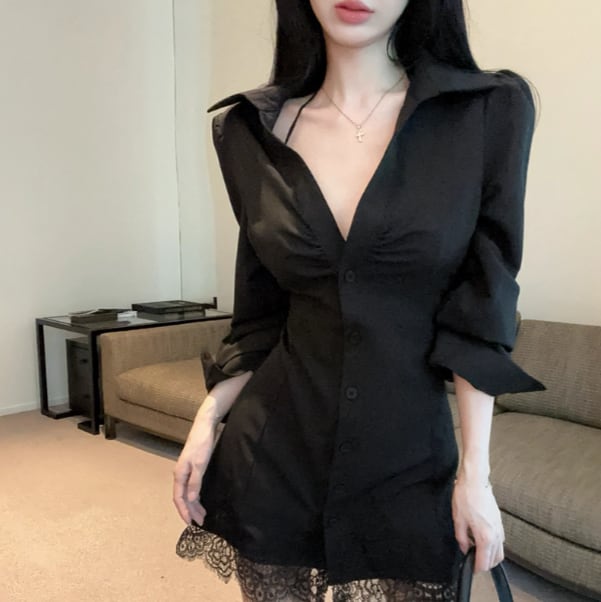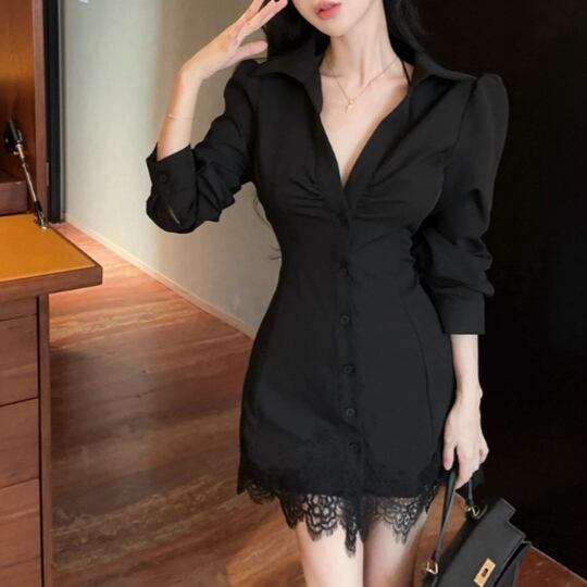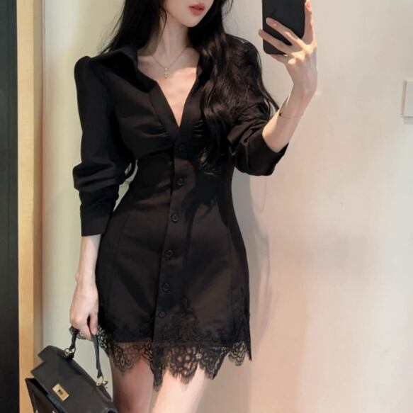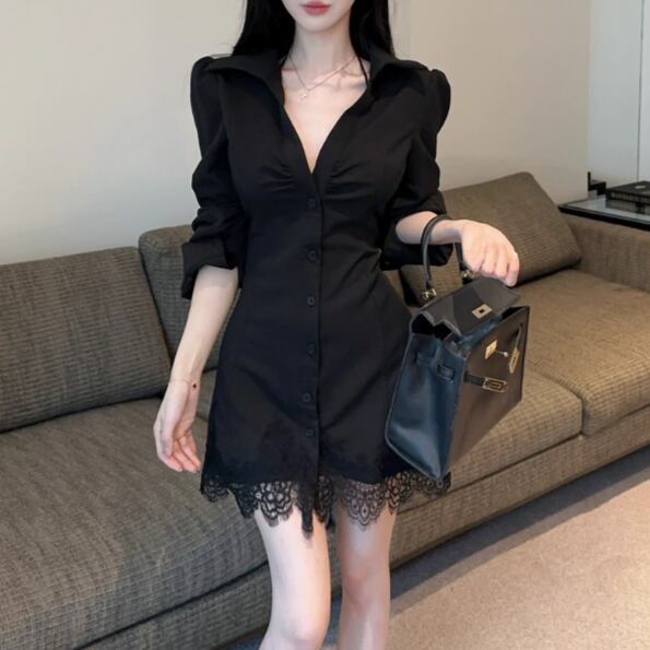 レースデザインワンショルワンピ ・12621