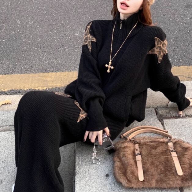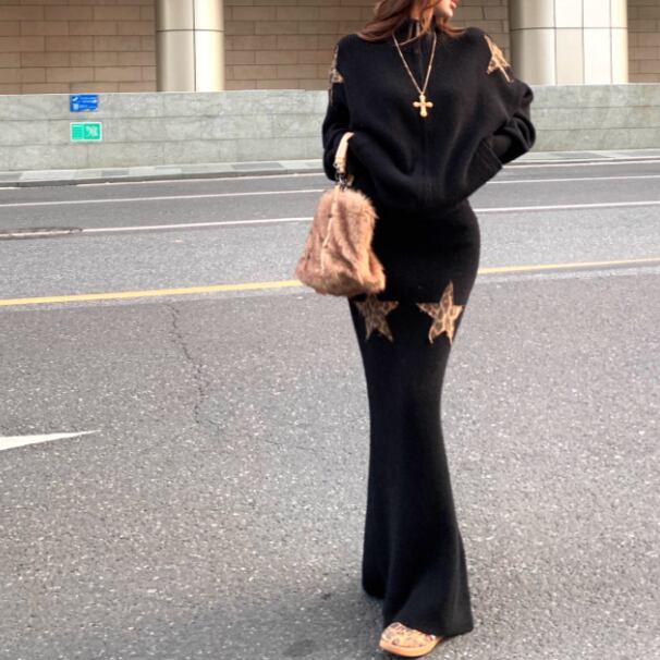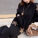 【2点セット】3色/フーディーカシュクールトップス+マーメイドスカート ・12506