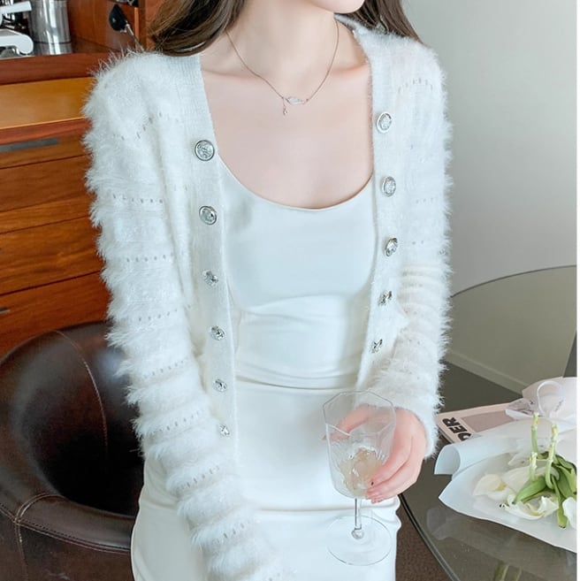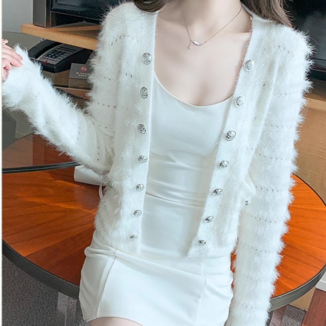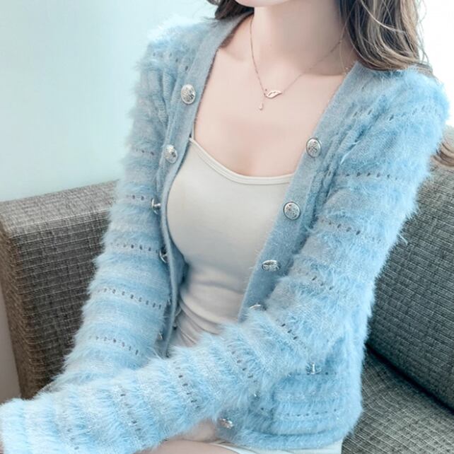 ドルマンスリーブファーケーブルニットカーデ ・13037