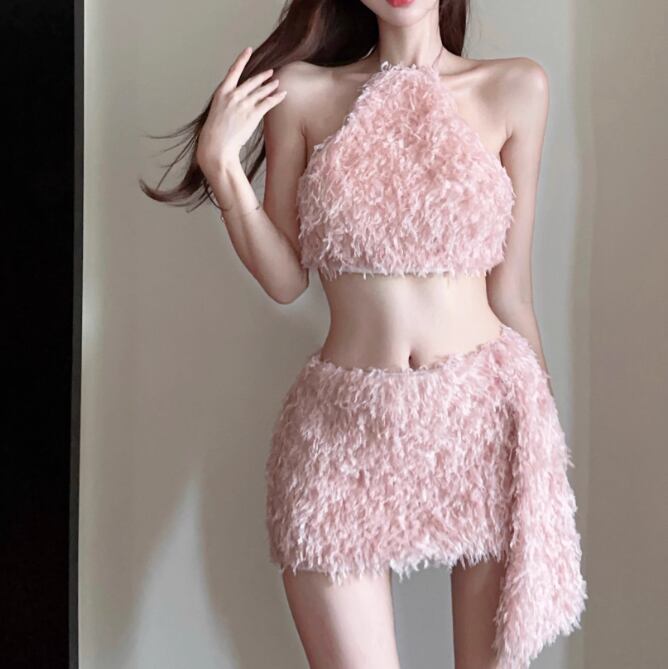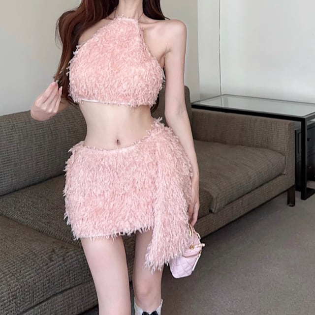 【2点セット】3色/フーディーカシュクールトップス+マーメイドスカート ・12506