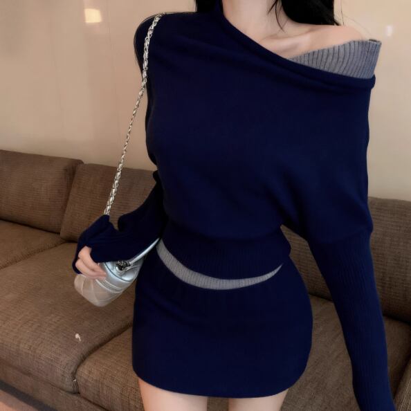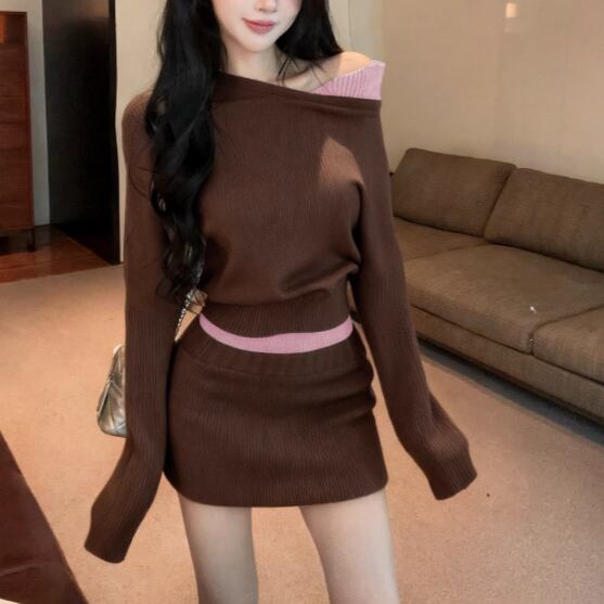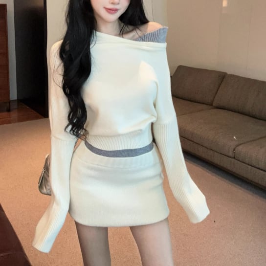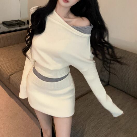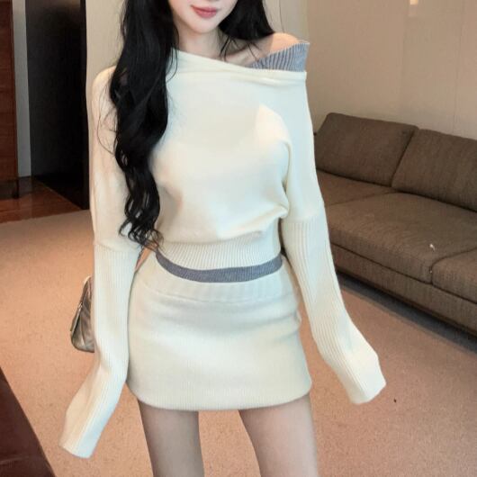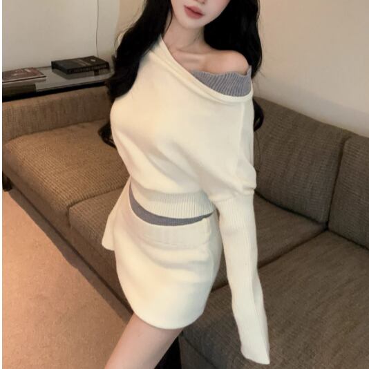 【2点セット】3色/フーディーカシュクールトップス+マーメイドスカート ・12506