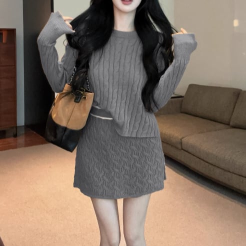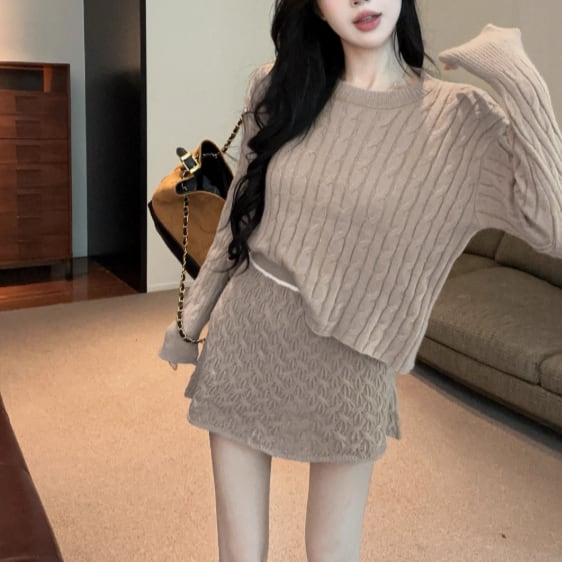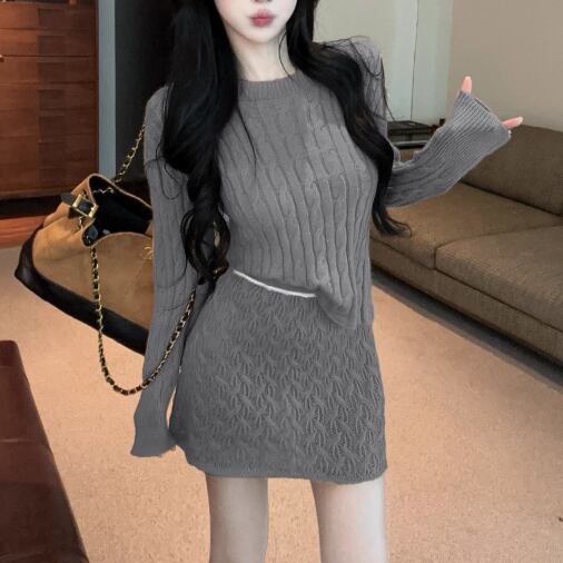 【2点セット】3色/フーディーカシュクールトップス+マーメイドスカート ・12506