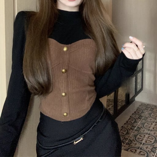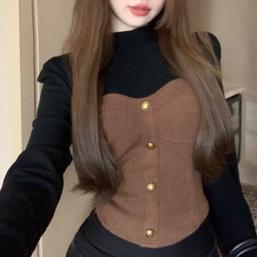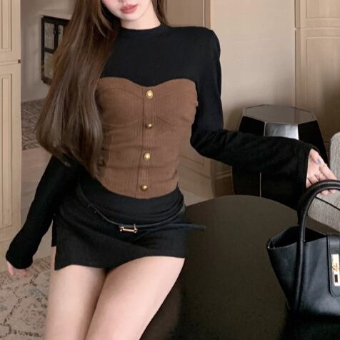 3色/ファーカラーレースアップコンビトップス ・12904