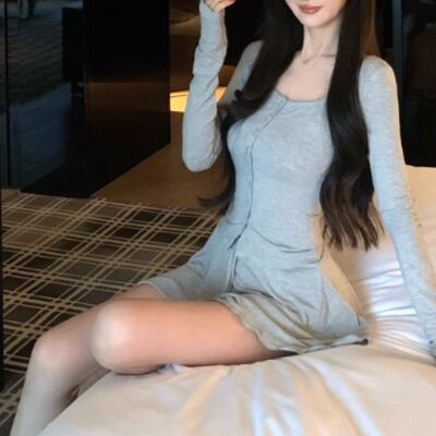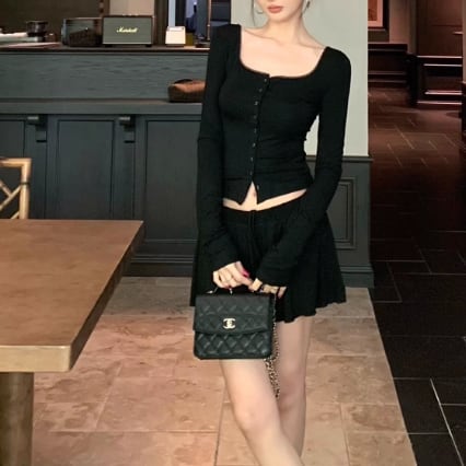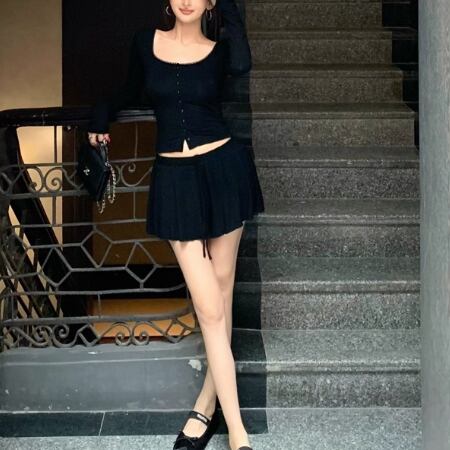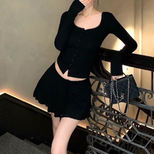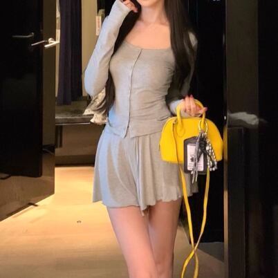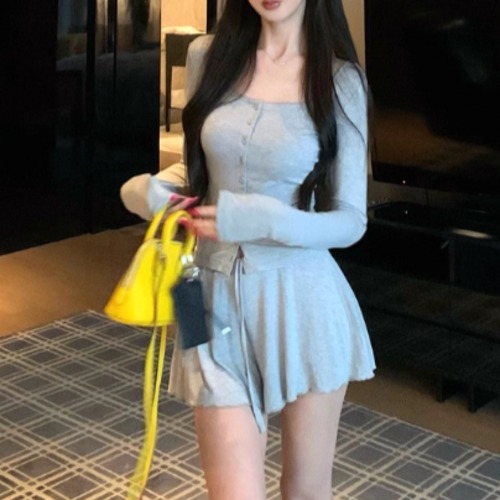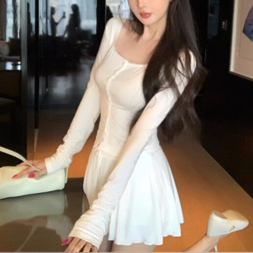 【2点セット】3色/フーディーカシュクールトップス+マーメイドスカート ・12506