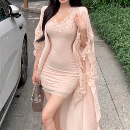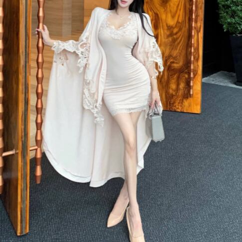 【2点セット】3色/フーディーカシュクールトップス+マーメイドスカート ・12506