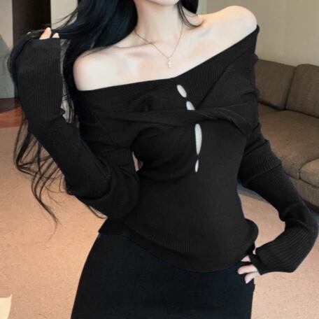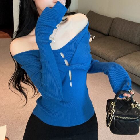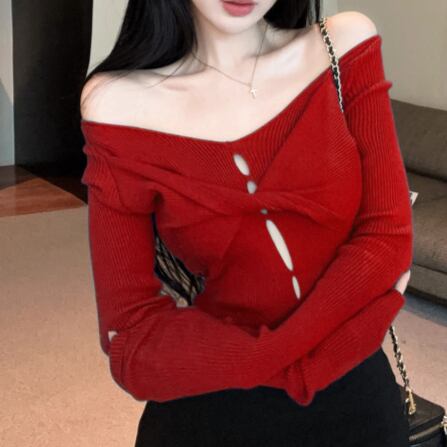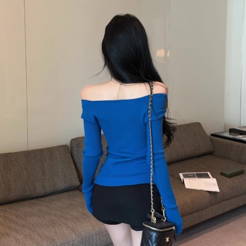 5色/オープンショルダードレープネックトップス ・12357