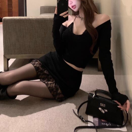【2点セット】3色/フーディーカシュクールトップス+マーメイドスカート ・12506