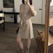 【2点セット】3色/フーディーカシュクールトップス+マーメイドスカート ・12506