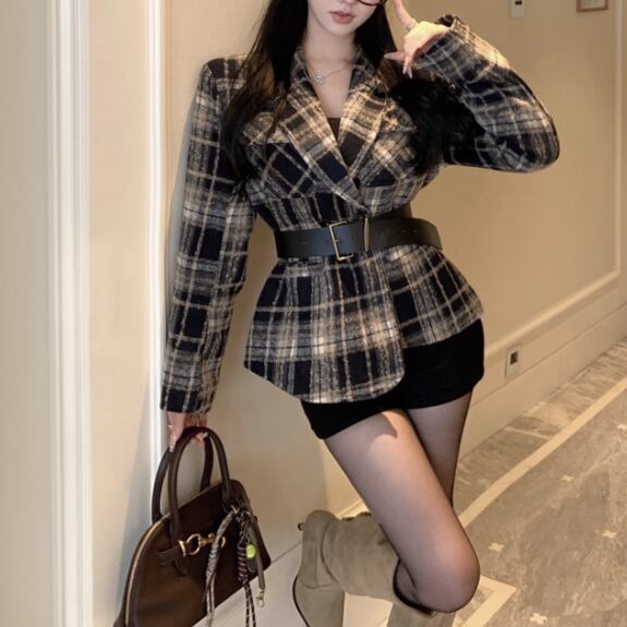 チェックダブルボタンジャケット ・13107