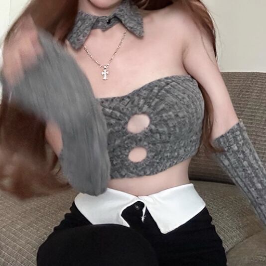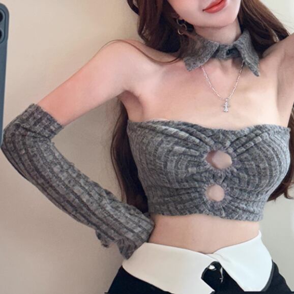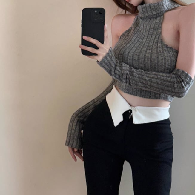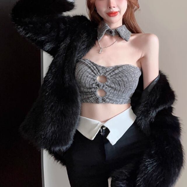 ファーデザインホルターネックトップス ・12698