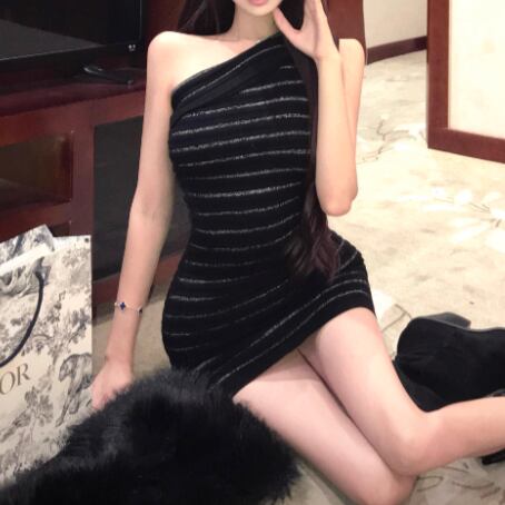 レースデザインワンショルワンピ ・12621