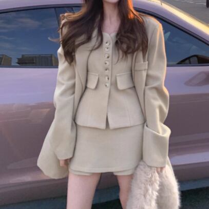 ▽Instagram「新作情報配信中」 フォローお願いいたします。 https://www.instagram.com/rote_roze.official/ ▼サイズ [ Sサイズ ] ジャケット:着丈74cm バスト112cm 肩幅46cm 袖丈61cm ベスト:着丈32cm バスト84cm ウエスト66cm スカート:着丈33cm ウエスト64cm [ Mサイズ ] ジャケット:着丈75cm バスト116cm 肩幅47cm 袖丈62cm ベスト:着丈33cm バスト84cm ウエスト70cm スカート:着丈34cm ウエスト68cm [ Lサイズ ] ジャケット:着丈76cm バスト120cm 肩幅48cm 袖丈63cm ベスト:着丈34cm バスト84cm ウエスト74cm スカート:着丈35cm ウエスト72cm ※1-3cm程度の誤差がある場合がございます。予めご了承ください。 ▼シーズン 秋,冬 ▼同じカテゴリの商品はこちら https://www.roteroze.com/categories/4991976 ▽お支払い方法 ・クレジットカード決済 ・キャリア決済 (docomo/au/Softbank/Y!mobile) ・後払い決済 (商品お届け後コンビニ払いなど) ▽注意点 ※こちらの商品は決済から10日-3週間前後でのお届けとなります。 ※配送日時指定等に関しては、ご指定できないことご了承くださいませ。 ※できる限り早くお届けできるように手配させて頂きます。 ※検品はしておりますが、もし届いた商品に不備がありましたら、誠実に対応させていただきます。 商品ID:RR012950