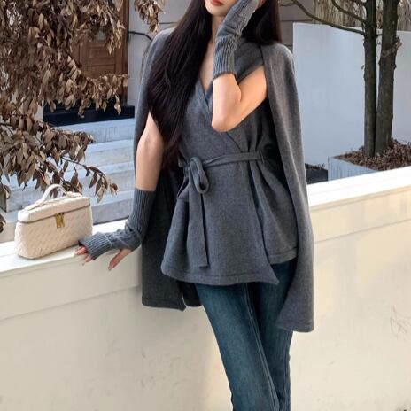 【2点セット】3色/フーディーカシュクールトップス+マーメイドスカート ・12506