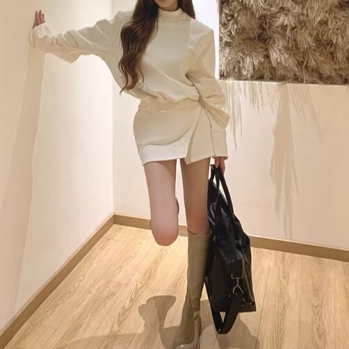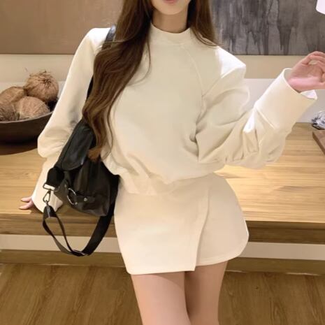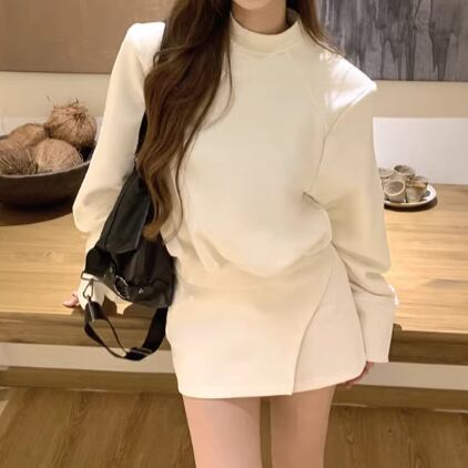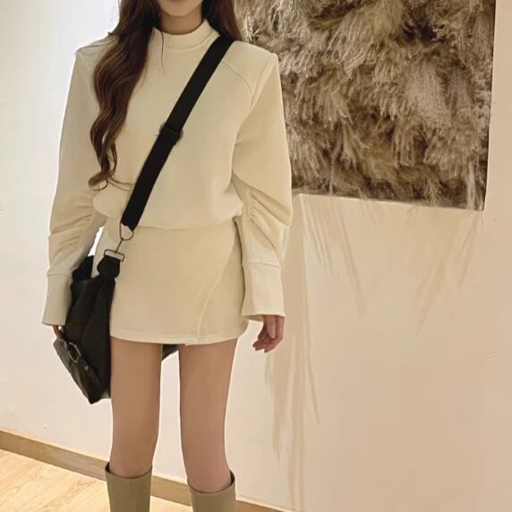 【2点セット】3色/フーディーカシュクールトップス+マーメイドスカート ・12506