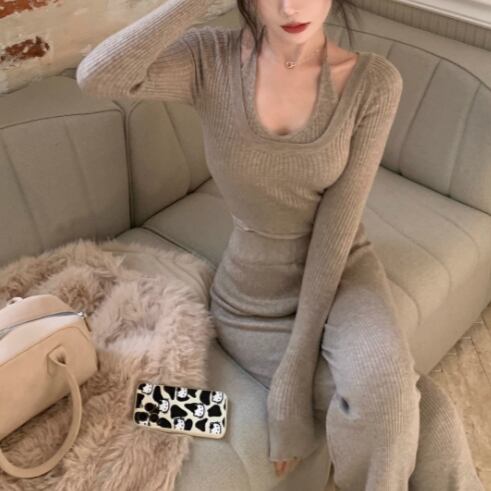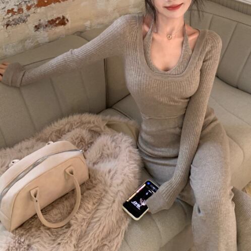 【2点セット】3色/フーディーカシュクールトップス+マーメイドスカート ・12506