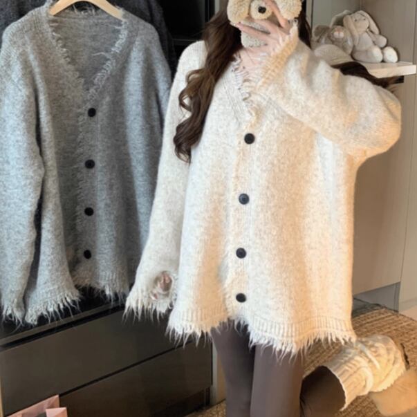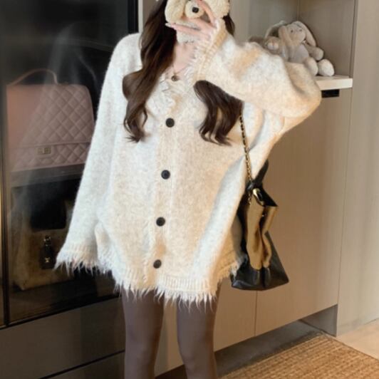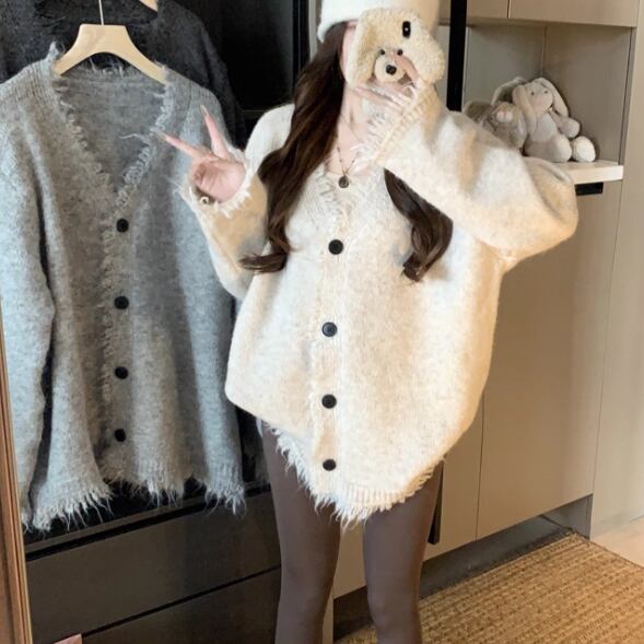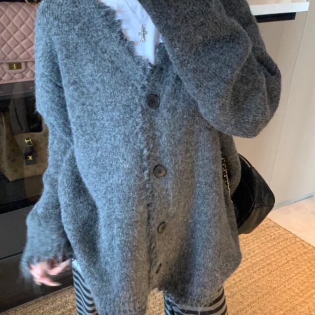 ドルマンスリーブファーケーブルニットカーデ ・13037