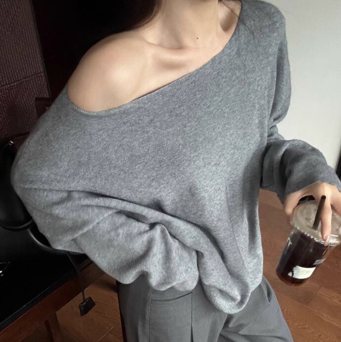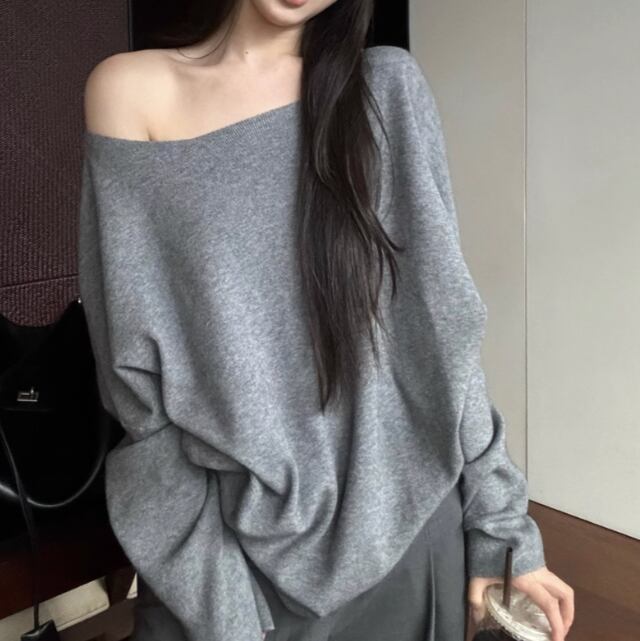 5色/オープンショルダードレープネックトップス ・12357