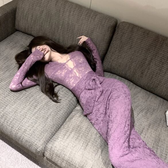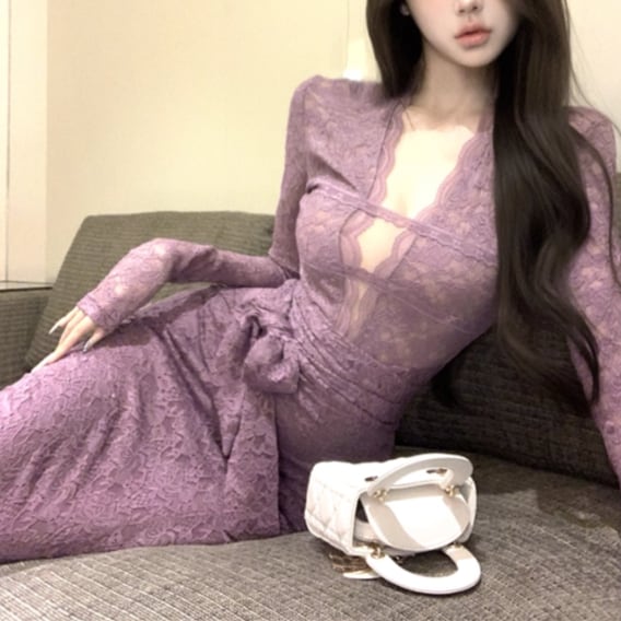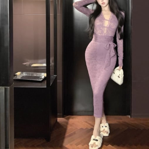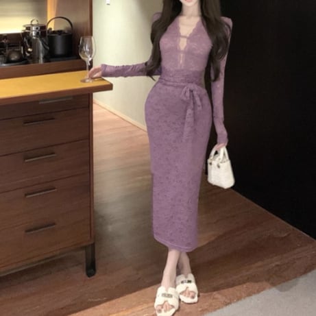 レースデザインワンショルワンピ ・12621