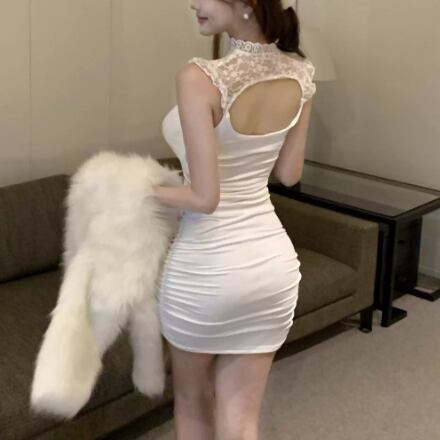 レースデザインワンショルワンピ ・12621