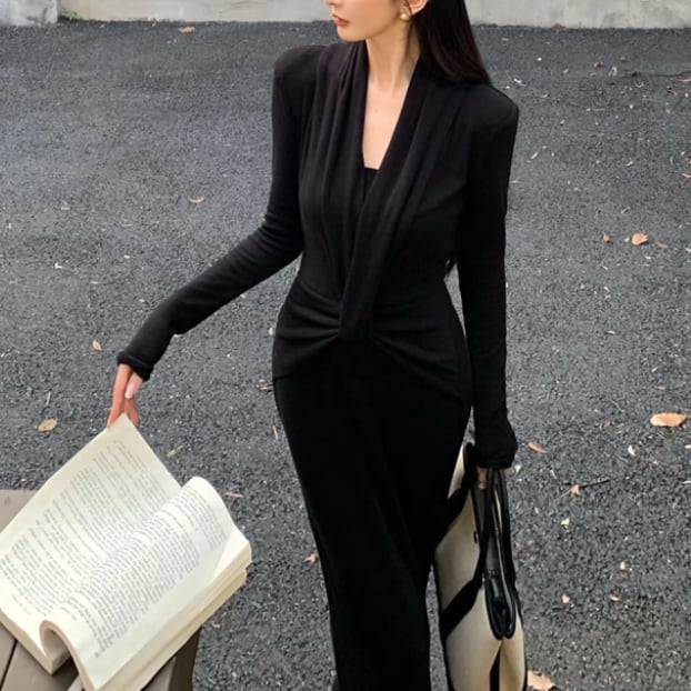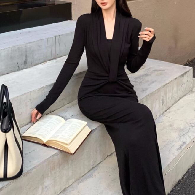 【2点セット】3色/フーディーカシュクールトップス+マーメイドスカート ・12506