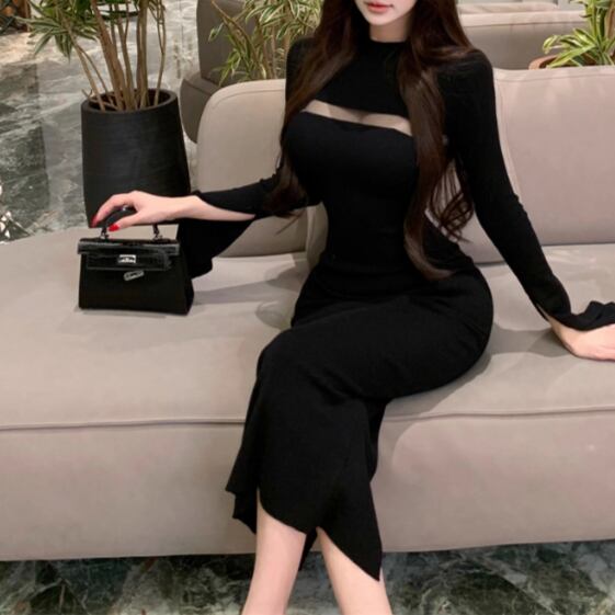 4色/シアースリーブストラップショルダーワンピ ・12626