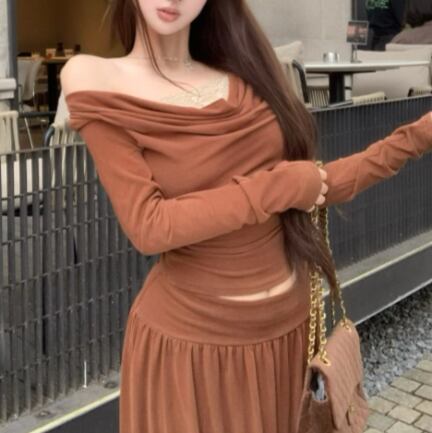 【2点セット】3色/フーディーカシュクールトップス+マーメイドスカート ・12506