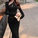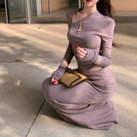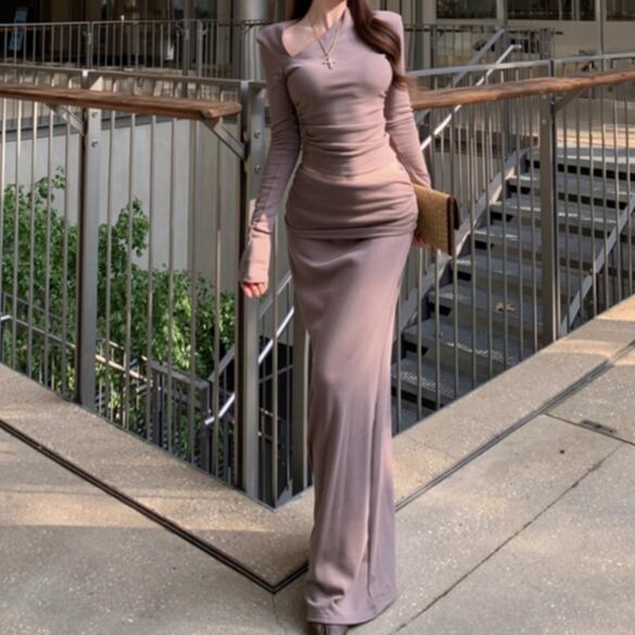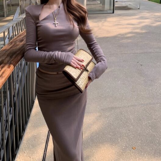 【2点セット】3色/フーディーカシュクールトップス+マーメイドスカート ・12506