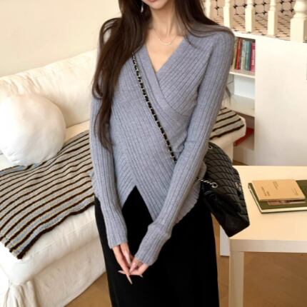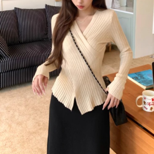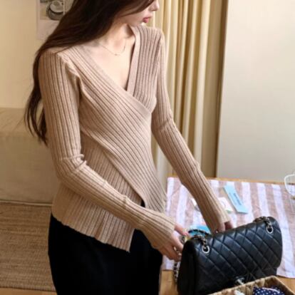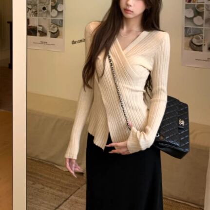 5色/オープンショルダードレープネックトップス ・12357