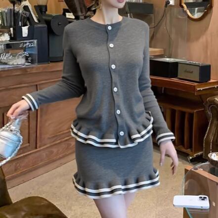 【2点セット】3色/フーディーカシュクールトップス+マーメイドスカート ・12506