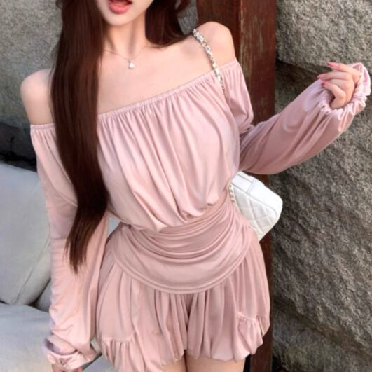 【3点セット】レースブラレット+オフショルトップス+レースヘムスカート ・12766