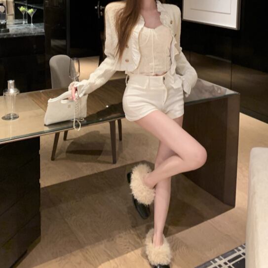 ▽Instagram「新作情報配信中」 フォローお願いいたします。 https://www.instagram.com/rote_roze.official/ ▼サイズ [ Sサイズ ] キャミ:着丈41cm バスト70cm ジャケット:着丈43cm バスト102cm 肩幅38cm 袖丈61cm ショーパン:着丈27cm ウエスト64cm [ Mサイズ ] キャミ:着丈41cm バスト70cm ジャケット:着丈44cm バスト106cm 肩幅39cm 袖丈62cm ショーパン:着丈28cm ウエスト68cm ※1-3cm程度の誤差がある場合がございます。予めご了承ください。 ▼シーズン 秋,冬 ▼同じカテゴリの商品はこちら https://www.roteroze.com/categories/4991976 ▽お支払い方法 ・クレジットカード決済 ・キャリア決済 (docomo/au/Softbank/Y!mobile) ・後払い決済 (商品お届け後コンビニ払いなど) ▽注意点 ※こちらの商品は決済から10日-3週間前後でのお届けとなります。 ※配送日時指定等に関しては、ご指定できないことご了承くださいませ。 ※できる限り早くお届けできるように手配させて頂きます。 ※検品はしておりますが、もし届いた商品に不備がありましたら、誠実に対応させていただきます。 商品ID:RR013132